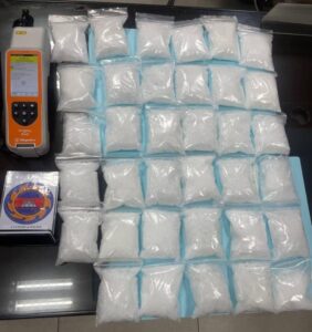 តាមការត្រួតពិនិត្យលើដងខ្លួន មន្ត្រីគយនិងរដ្ឋាករ បានរកឃើញម្សៅពណ៌សចំនួន ៣៥កញ្ចប់ រុំជាប់នឹងដងខ្លួន។ នេះបើតាមការបញ្ជាក់របស់អ្នកនាំពាក្យអគ្គនាយកដ្ឋានគយនិងរដ្ឋាករកម្ពុជា បានឲ្យដឹងនៅព្រឹកថ្ងៃទី១១ ខែមីនា ឆ្នាំ២០២៤ថា តាមលទ្ធផលតេស្តបឋម ដោយមន្ត្រីជំនាញនៃមន្ទីរប្រឆាំងបទល្មើសគ្រឿងញៀន ម្សៅពណ៌សទាំងនោះ ជាគ្រឿងញៀនប្រភេទ Methamphetamine មានទម្ងន់ ៤ ៩៦៥,៣០ ក្រាម។