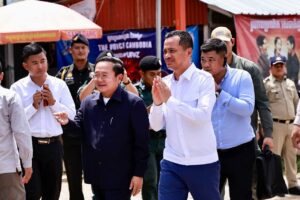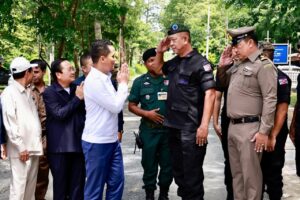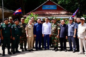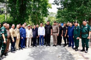 បន្ទាប់ពីបញ្ចប់កិច្ចប្រជុំនៅបញ្ជាការដ្ឋាន វរសេនានគរបាលការពារព្រំដែនគោក លេខ៨១៧ ឯកឧត្តមអភិសន្តិបណ្ឌិត ស សុខា បានបន្តទៅសួរសុខទុក្ខមន្ត្រី និងកម្លាំងប្រចាំការនៅច្រកទ្វារព្រំដែនអូររំដួល ស្ថិតនៅស្រុកសំពៅលូន និងនៅច្រកទ្វារព្រំដែនអូរអន្លក់ ស្ថិតនៅស្រុកកំរៀង ខេត្តបាត់ដំបង។ ក្នុងឱកាសនោះ ឯកឧត្តមអភិសន្តិបណ្ឌិត ស សុខា ក៏បានថ្លែងអំណរគុណ និងបន្តលើកទឹកចិត្តដល់សមត្ថកិច្ចទាំងសុីវិល នគរបាល និងកងទ័ព ខិតខំរួមសហគ្នាការពារបូរណភាពទឹកដី ពង្រឹងសន្តិសុខតាមខ្សែបន្ទាប់ព្រំដែន ពិសេសបង្ក្រាបបទល្មើសចរាចរណ៍ដឹកជញ្ជូនគ្រឿងញៀន និងបទល្មើសជួញដូរមនុស្ស ព្រមទាំងបន្តកិច្ចសហប្រតិបត្តការប្រកបដោយសន្តិសហវិជ្ជមានជាមួយភាគីថៃ ដើម្បីកសាងនិងថែរក្សាព្រំដែនសន្តិភាពនិងការអភិវឌ្ឍ៕