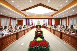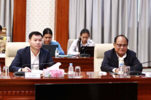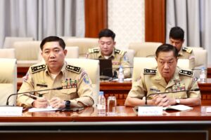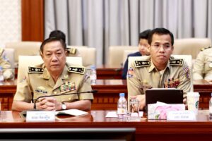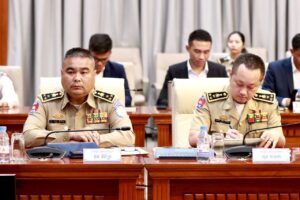 នាយករដ្ឋមន្ត្រី នៃព្រះរាជាណាចក្រកម្ពុជា និងទំព័រហ្វេសប៊ុក សម្តេចក្រឡាហោម ស ខេង ក្នុងសមត្ថកិច្ចក្រសួងមហាផ្ទៃ នៅសាលប្រជុំទីស្តីការក្រសួងមហាផ្ទៃ។