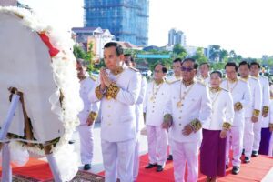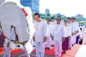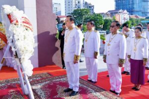 គោរពព្រះវិញ្ញាណក្ខន្ធ និងថ្វាយកម្រងផ្កា ក្នុងទិវាប្រារព្ធព្រះរាជពិធីគោរពព្រះវិញ្ញាណក្ខន្ធ ខួបគម្រប់ ១២ឆ្នាំ (១៥ តុលា ២០១២-១៥ តុលា ២០២៤) នៃការយាងសោយព្រះទិវង្គតរបស់ព្រះករុណា សម្តេចព្រះ នរោត្តម សីហនុ ព្រះមហាវីរក្សត្រ ព្រះវររាជបិតាឯករាជ្យ បូរណភាពទឹកដី និងឯកភាពជាតិខ្មែរ ព្រះបរមរតនកោដ្ឋ នៅមណ្ឌបព្រះបរមរូប វិមានឯករាជ្យ រាជធានីភ្នំពេញនៅព្រឹកថ្ងៃទី១៥ ខែតុលា ឆ្នាំ២០២៤ នេះ។