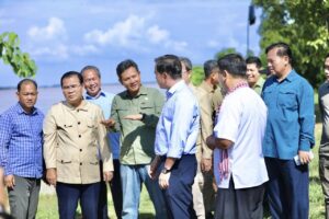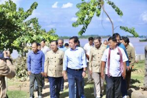 នៅរសៀលថ្ងៃសៅរ៍ ទី១៩ ខែតុលា ឆ្នាំ២០២៤នេះ ឯកឧត្តម អ៊ុន ចាន់ដា អភិបាល នៃគណៈអភិបាលខេត្តកំពង់ចាម បានដឹកនាំ ក្រុមការងារខេត្ត មន្ត្រីបច្ចេកទេស និងអាជ្ញាធរពាក់ព័ន្ធ ចូលរួមអមដំណើរ ឯកឧត្តមរដ្ឋមន្ត្រី ថោ ជេដ្ឋា រដ្ឋមន្ត្រីក្រសួងធនធានទឹកនិងឧតុនិយមអញ្ជើញចុះពិនិត្យស្ថានភាពច្រាំង ដែលបានបាក់ស្រុតចូលទៅក្នុងទន្លេមេគង្គ ស្ថិតនៅភូមិមាន់ដប់លើ (មុខវត្តមាត់ដប់ ) ឃុំមានជ័យ ស្រុកស្រីសន្ធរ។