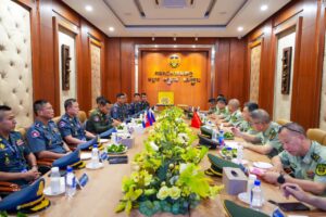 ដោយបានការអនុញ្ញាតពី លោកនាយឧត្តមសេនីយ៍ សៅ សុខា អគ្គមេបញ្ជាការរង កងយោធពលខេមរភូមិន្ទ មេបញ្ជាការ កងរាជអាវុធហត្ថលើផ្ទៃប្រទេស នៅថ្ងៃទី២២ ខែតុលា ឆ្នាំ២០២៤ លោកឧត្តមសេនីយ៍ឯក រ័ត្ន ស្រ៊ាង មេបញ្ជាការរង កងរាជអាវុធហត្ថលើផ្ទៃប្រទេស ជាមេបញ្ជាការ កងរាជអាវុធហត្ថរាជធានីភ្នំពេញ បានអញ្ជើញទទួលស្វាគមន៍ គណៈប្រតិភូប៉ូលីសប្រដាប់អាវុធ នៃកងទ័ពរំដោះប្រជាជនចិន ដឹកនាំដោយ ឯកឧត្តម ឧត្តមសេនីយ៍ឯក ជូ គួរពីវ (ZHU Guobioa) អនុប្រធាននយោបាយកងកម្លាំងប៉ូលីសប្រដាប់អាវុធ នៃកងទ័ពរំដោះប្រជាជនចិន អញ្ជើញមកជួបសម្តែងការគួរសម និងទស្សនកិច្ចនៅបញ្ជាការដ្ឋាន កងរាជអាវុធហត្ថរាជធានីភ្នំពេញ ក្នុងពេលដែល ឯកឧត្តម ឧត្តមសេនីយ៍ឯក អញ្ជើញមកបំពេញទស្សនកិច្ច នៅព្រះរាជាណាចក្រកម្ពុជា។