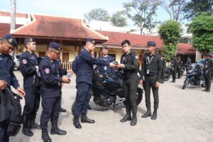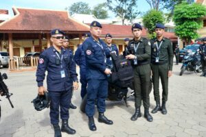 សៀមរាប : នាព្រឹក ថ្ងៃទី០៨ ខែវិច្ឆិកា ឆ្នាំ២០២៤ នៅបញ្ជាការដ្ឋានកងរាជអាវុធហត្ថខេត្តសៀមរាប លោកឧត្តមសេនីយ៍ត្រី សៀ ទីន មេបញ្ជាការ កងរាជអាវុធហត្ថខេត្តសៀមរាប បានបំពាក់គ្រឿងសម្ភារបរិក្ខារជាច្រើនប្រភេទ ដល់កម្លាំងកងអនុសេនាធំ កងរាជអាវុធហត្ថចល័ត ដើម្បីប្រើជាប្រយោជន៍ក្នុងការងារប្រតិបត្តិការចូលរួមការពារសន្តិសុខ សុវត្ថិភាព រក្សាសណ្តាប់ធ្នាប់ ជូនដល់ប្រជាពលរដ្ឋ ក៏ដូចជាភ្ញៀវទេសចរណ៍ជាតិ-អន្តរជាតិ នៅក្នុងភូមិសាស្ត្រខេត្តសៀមរាប ឲ្យកាន់តែមានប្រសិទ្ធភាពខ្ពស់បន្ថែមទៀត។
