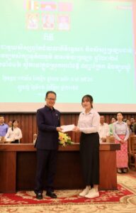 ឯកឧត្តមបណ្ឌិត អ៊ាង សុផល្លែត រដ្ឋមន្ត្រីក្រសួងបរិស្ថាន នាព្រឹកថ្ងៃទី១២ ខែវិច្ឆិកា ឆ្នាំ២០២៤នេះ បានអញ្ជើញជួបពិធីជួបសំណេះសំណាល ថ្លែងអំណរគុណ លោកគ្រូ អ្នកគ្រូ អាណាព្យាបាល និងបានប្រគល់អំណោយលើកទឹកចិត្តនាំយកថវិការបស់សម្តេចមហាបវរធិបតី ហ៊ុន ម៉ាណែត នាយករដ្ឋមន្រ្តីនៃព្រះរាជាណាចក្រកម្ពុជា និងលោកជំទាវបណ្ឌិត ពេជ ចន្ទមុន្នី ហ៊ុនម៉ាណែត ជូនសិស្សានុសិស្សដែលប្រឡងជាប់សញ្ញាបត្រមធ្យមសិក្សាទុតិយភូមិ សម័យប្រឡងកាលពីថ្ងៃទី៨-៩ ខែតុលា ឆ្នាំ២០២៤ មកពីស្រុកអូររាំងឪ ស្រុកពញាក្រែក និងស្រុកត្បូងឃ្មុំ ខេត្តត្បូងឃ្មុំ។